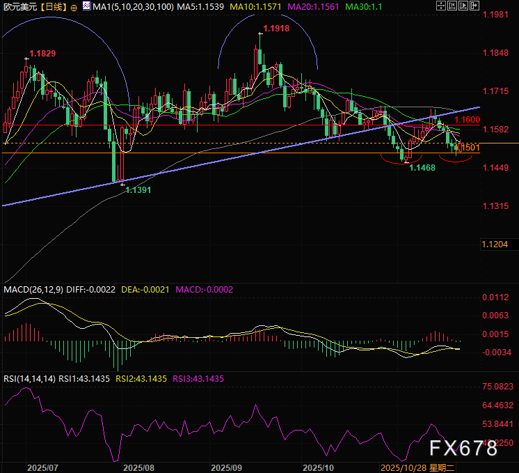欧元兑美元再次守住1.1500,日线图显示,汇价可能走出双底形态,并依据双底形态向上进攻,与双头形态一较高下。