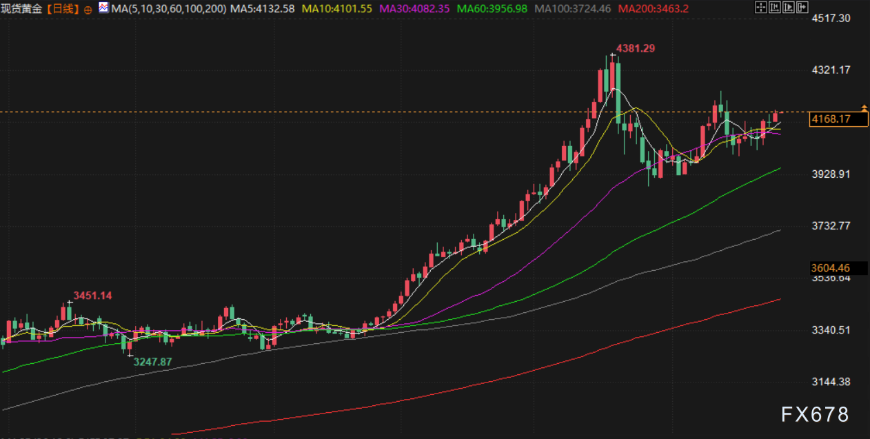 尽管上周美国初请失业金人数有所下降,显示裁员仍处于较低水平,但劳动力市场在持续的经济不确定性下仍面临挑战。其他贵金属同样表现强劲:现货白银大涨3.3%至每盎司53.12美元;铂金上涨1.2%至1571.80美元;钯金上涨1%至1411.50美元。随着市场继续消化经济数据和央行政策信号,黄金的避险属性持续吸引投资者关注。